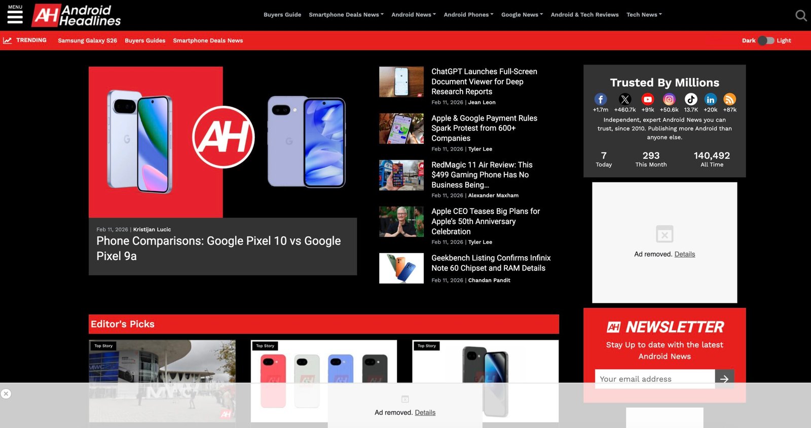 - Android Headlines — homepage (shows current tone & hot sections)