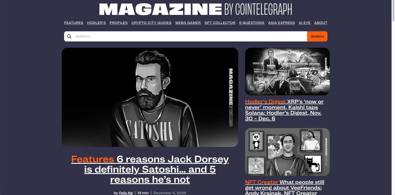 Cointelegraph Magazine positions itself as a publication that goes beyond daily crypto news and digs deeper into the stories, trends, and personalities that inspire blockchain conversations globally. They describe themselves as people-centric and publish long-form features, thoughtful analysis, and a little humor and satire — with the purpose of showing how the technology is affecting real lives today.