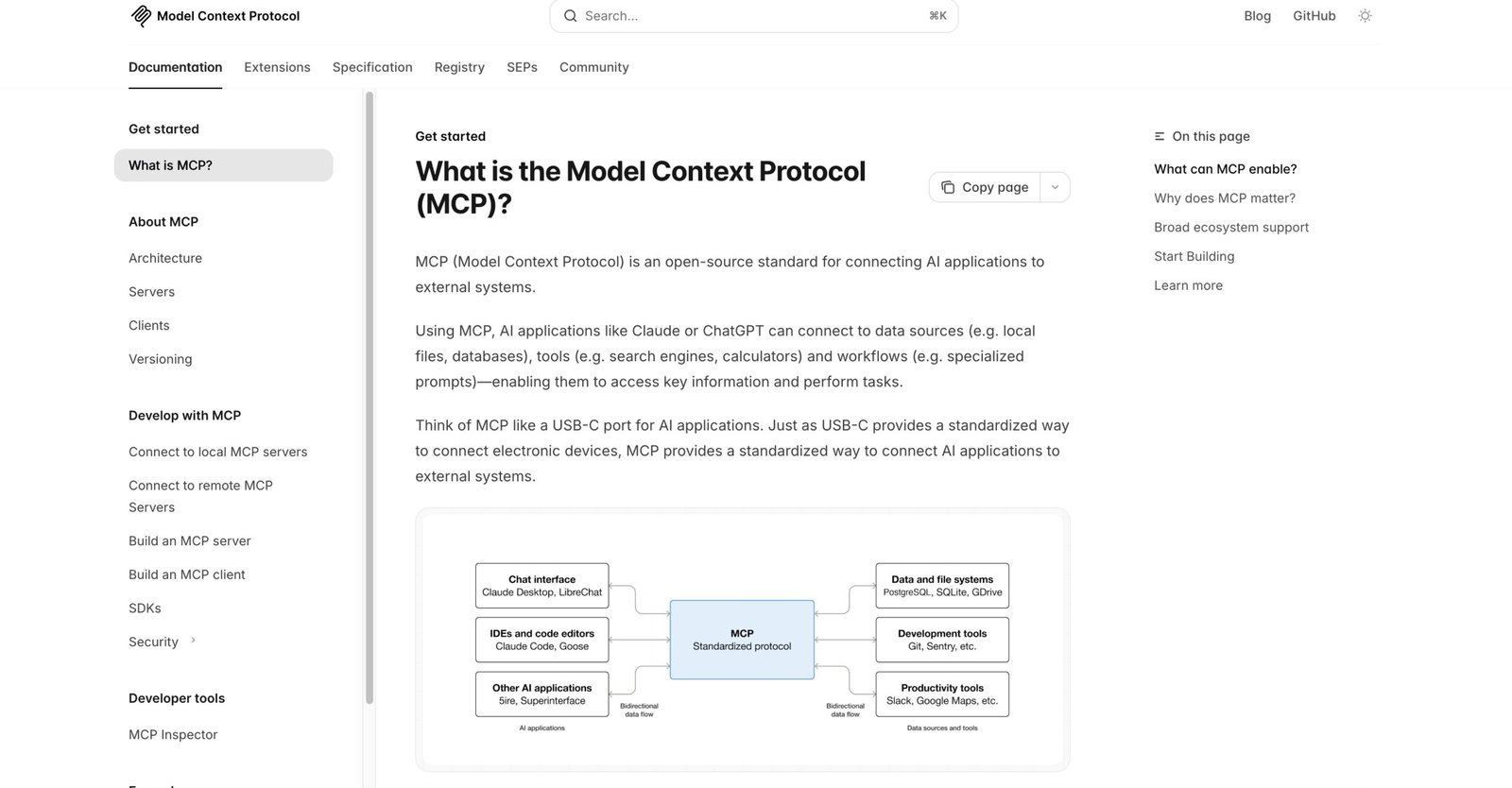 MCP is not a single product. It’s a spec, plus a growing set of reference servers, client libraries, and community tools. Because it is a standard, multiple AI platforms and tooling ecosystems can implement it once and then use the same servers across models.