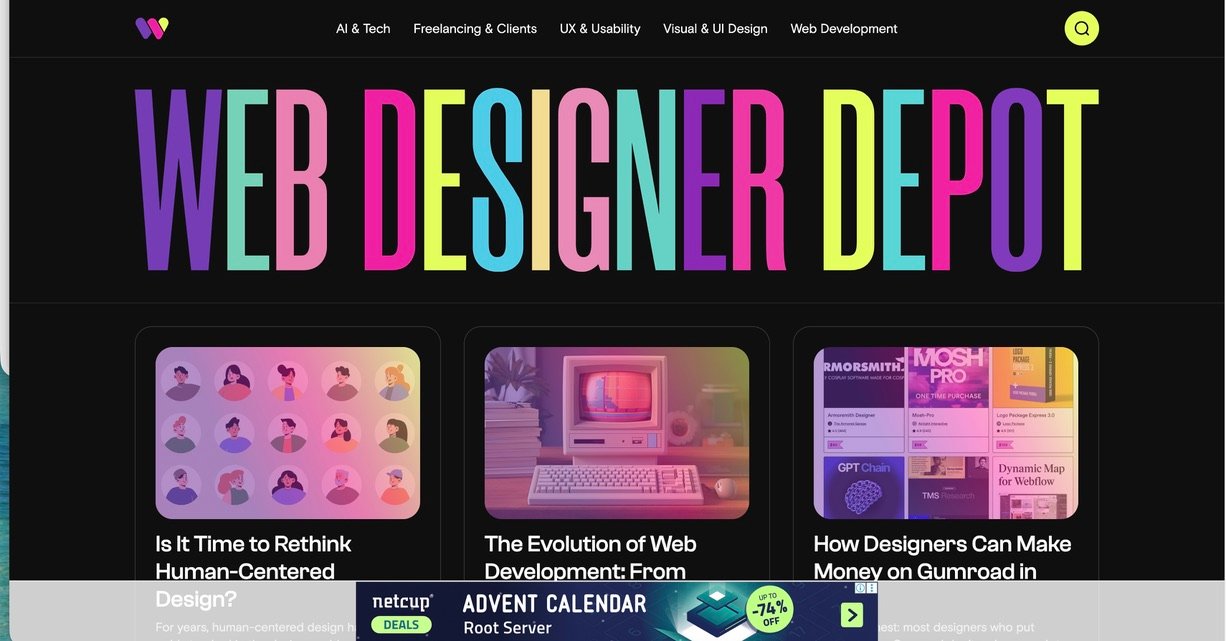 WebDesigner Depot is a web design blog that publishes practical and opinionated writing across design, UX, UI, tools, freelancing, and web development. Their categories make the focus clear: AI & Tech, Freelancing & Clients, UX & Usability, Visual & UI Design, and Web Development.